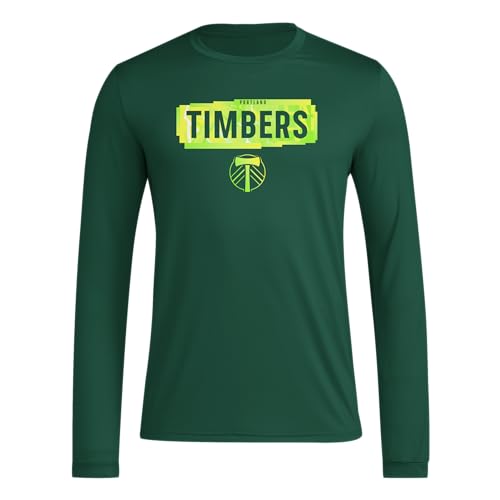 adidas Men’s Long Sleeve Pre-Game T-Shirt, Dark Green/Portland Timbers, Large