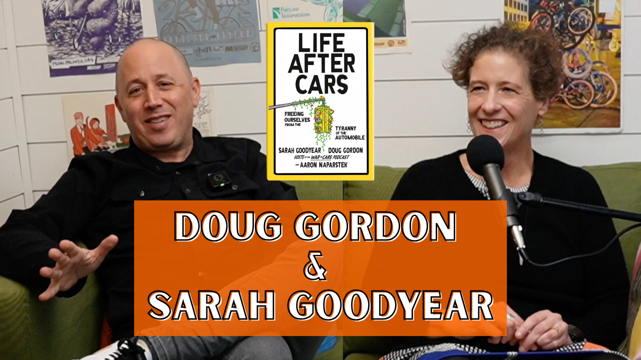 Before they joined us at Bike Happy Hour on Wednesday, Life After Cars co-authors and War on Cars Podcast hosts Doug Gordon and Sarah Goodyear swung by the Shed for a chat. The video above is a highlight reel from our conversation. If you missed Bike Happy Hour or their sold-out event at Powell’s Thursday night, this is a great chance to get to know this wonderful duo and to be inspired by the important work they’re doing.