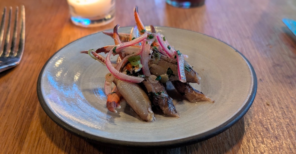 On a quiet fall evening in the elegant Dame dining room, it certainly feels like the couple’s Louisiana gambit is paying out. The assembled diners, mostly well-dressed couples and a small group in the corner, chat casually about the upcoming ski season and Paul Thomas Anderson’s filmography. But as the dishes start rolling out of the kitchen the ambient chatter drops away almost instantly, leaving only the muted clink of forks on plates and the occasional request to “pass the butter” and “oh my gosh, try these crab legs.”