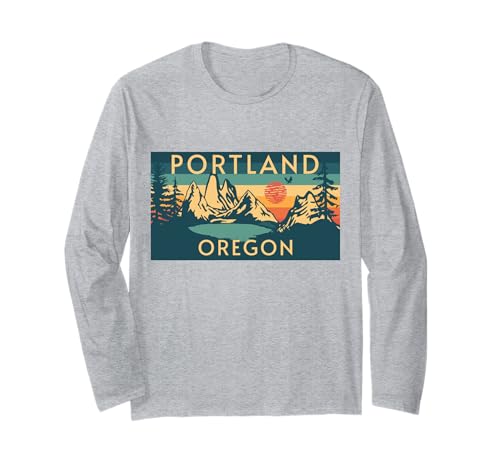 Portland Maine with mountains retro sunset design. Show off your love of nature, hiking and the outdoors.