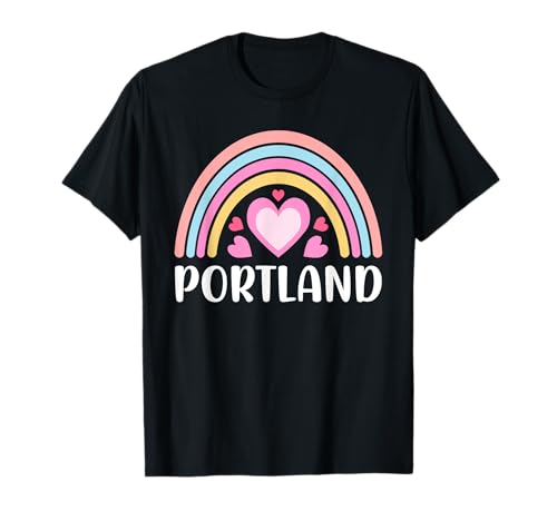 Cute aesthetic rainbow heart Portland Oregon design for women. This makes a great gift for women who love Portland!