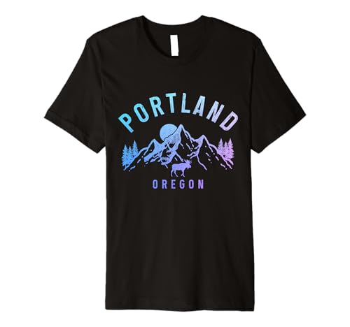 Portland Oregon Vintage Mountains Moose Nature Lover Premium T-Shirt