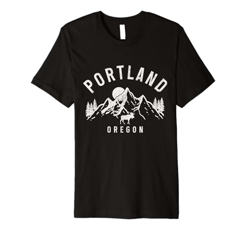 Portland Oregon Vintage Mountains Moose Nature Lover Premium T-Shirt