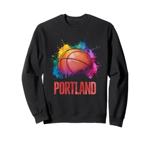 31gYD9KvGuL._SL500_ Sport Baller Colorful Basketball Watercolor Splash Portland Sweatshirt
