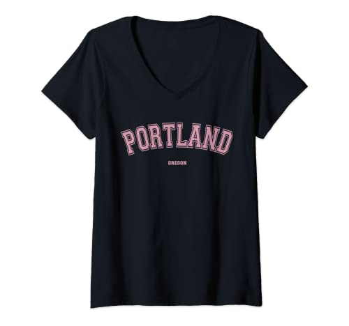 buy_now Womens Pink Portland Oregon OR Varsity Style on Portland V-Neck T-Shirt